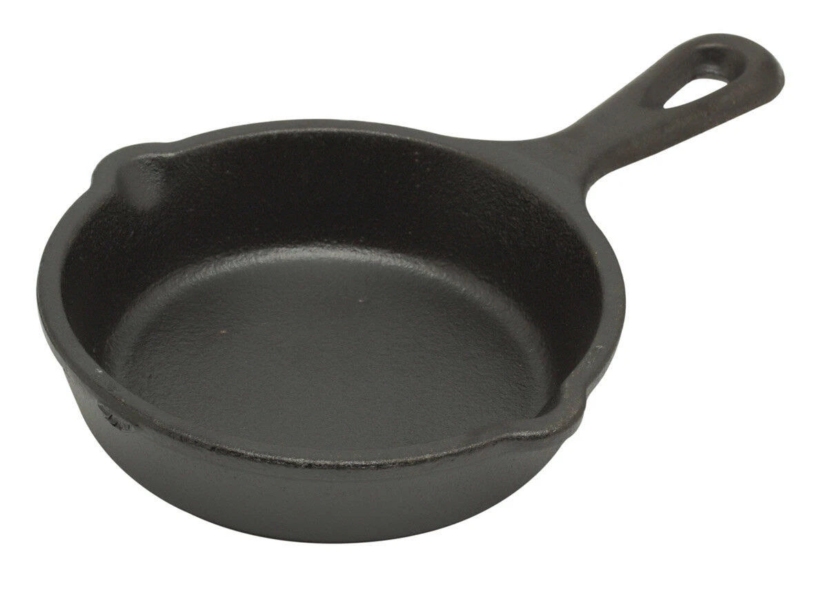 Deze Lodge Logic mini-skillet koekenpan heeft een diameter van 9 cm. De pan en handgreep zijn in één keer gegoten van ongeëmailleerd gietijzer. De pan heeft twee schenktuiten die het schenken van ingrediënten uit de pan vergemakkelijken. Gebruik de skillet koekenpan voor het bakken van hele kleine hoeveelheden of het serveren van gerechtjes.