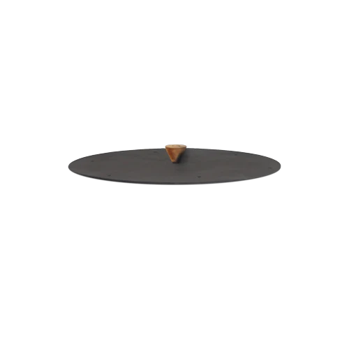 De OFYR doofdeksel heeft een diameter van 90 cm en is gemaakt van Cortenstaal. De zwarte deksel zal na verloop van tijd door weersinvloeden oranje kleuren. Gebruik de deksel op de OFYR XL barbecues met een diameter van 150 cm.